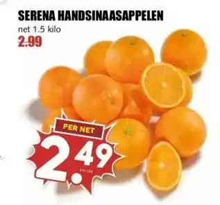 De aanbieding is verkrijgbaar in verschillende winkels, bekijk alle producten om de goedkoopste SERENA HANDSINAASAPPELEN te krijgen. Als je graag wilt kijken of het artikel met meer korting te koop is in een andere winkel, bekijk de categorie 'Supermarkt'. Wellicht vind je deze aanbiedingen ook interessant: Serena handsinaasappelen, Serena handsinaasappelen & Serena handsinaasappelen.