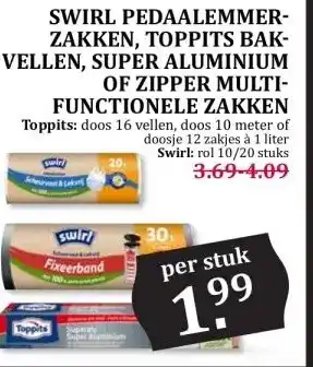 SWIRL PEDAALEMMER- ZAKKEN, TOPPITS BAK-VELLEN, SUPER ALUMINIUM OF ZIPPER MULTI- FUNCTIONELE ZAKKEN aanbieding en online acties bij MCD Supermarkt