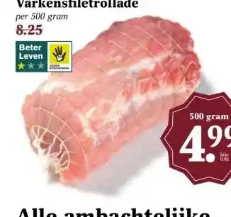 De aanbieding is verkrijgbaar in verschillende winkels, bekijk alle producten om de goedkoopste Varkensfiletrollade te krijgen. Als je graag wilt kijken of het artikel met meer korting te koop is in een andere winkel, bekijk de categorie 'Supermarkt'. Wellicht vind je deze aanbiedingen ook interessant: Varkensfiletrollade, Varkensfiletrollade & Hoogvliet Varkensfiletrollade.