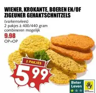 WIENER, KROKANTE, BOEREN EN/OF ZIGEUNER GEHAKTSCHNITZELS aanbieding en online acties bij MCD Supermarkt