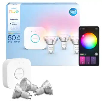 Philips Hue Wit En Gekleurd Licht 1 Bridge 3 Gu10-spots Starterkit Slimme Verlichting aanbieding en online acties bij MediaMarkt