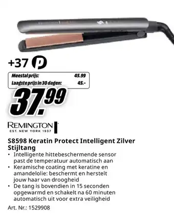 Nu in de aanbieding bij MediaMarkt: REMINGTON S8598 Keratin Protect Intelligent Zilver Stijltang✅ Actie geldig van 20-02 t/m 1-03.