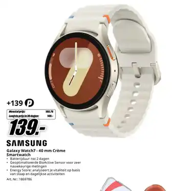 Nu in de aanbieding bij MediaMarkt: SAMSUNG Galaxy Watch7 - 40 mm Crème Smartwatch✅ Actie geldig van 20-02 t/m 1-03.