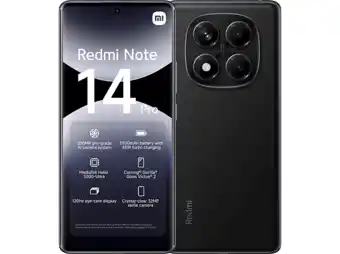 Actuele XIAOMI Redmi Note 14 Pro - 4G - Midnight Zwart + Redmi Buds 6 - Zwart - 256 GB Zwart aanbieding bij MediaMarkt van 14-05 t/m 4-01.