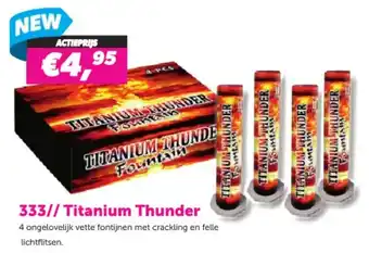 Neem een kijkje voor de goedkoopste producten tussen alle aanbiedingen! Als je wilt weten of Meester Vuurwerk de hoogste korting voor 333// Titanium Thunder heeft, vergelijk het op de Topic page of met andere winkels.