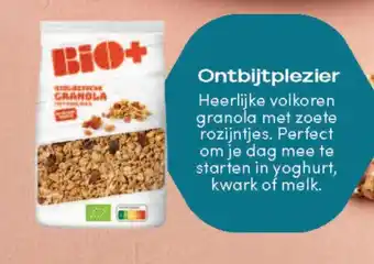 Ontbijtplezier met heerlijke volkoren granola van Bio+ met zoete rozijntjes. Deze knapperige en smaakvolle granola is perfect om je dag mee te starten. Geniet ervan in combinatie met yoghurt, kwark of melk voor een voedzaam en lekker ontbijt. De granola is biologisch en bevat geen kunstmatige toevoegingen, waardoor je verantwoord kunt genieten. De zoete rozijntjes zorgen voor een natuurlijke zoetheid en een lekkere bite. Met Bio+ Volkoren Granola met Rozijntjes begin je de dag vol energie en smaak. Een gezonde en voedzame keuze voor een goed begin van de dag. Probeer het nu en ontdek het ontbijtplezier van Bio+ granola!