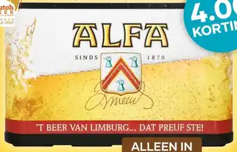 De aanbieding is verkrijgbaar in verschillende winkels, bekijk alle producten om de goedkoopste Alfa te krijgen. Als je graag wilt kijken of het artikel met meer korting te koop is in een andere winkel, bekijk de categorie 'Slijters'. Wellicht vind je deze aanbiedingen ook interessant: Alfa Edel Pils, Alfa Pilsener (krat) & Now alfa-liponzuur 250mg vegicaps 60st.