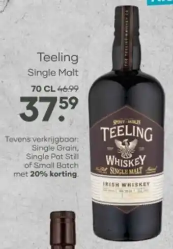 De Teeling Single Malt is momenteel met korting verkrijgbaar bij Mitra. Hier vind je alle details over prijs, geldigheidsduur en actievoorwaarden. Vergeet niet om ook andere aanbiedingen en deals voor Teeling Single Malt te bekijken zodat je zeker weet dat je de beste prijs betaalt. De kortingsactie loopt van 19-01-2026 tot 01-02-2026. Is de actie inmiddels verlopen? Geen zorgen, vergelijk dan soortgelijke aanbiedingen of volg de productcategorie voor toekomstige prijsverlagingen. Zo koop je altijd met voordeel.Veelgestelde vragen over Teeling Single Malt