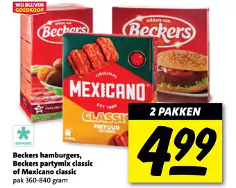 Beckers hamburgers, partymix of Mexicano classic - 2 pakken voor 4.99