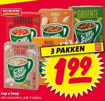 De prijs van de Cup a Soup kan ook teruggevonden worden hierboven op de pagina, samen met de datum van wanneer de aanbieding beschikbaar is. Ook kun je de prijzen in de huidige Nettorama folder of op de Nettorama website controleren. De aanbiedingen verzekeren je van het kopen van de Nettorama producten voor de laagste prijs.