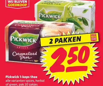 De prijs van de Pickwick 1-kops thee kan ook teruggevonden worden hierboven op de pagina, samen met de datum van wanneer de aanbieding beschikbaar is. Ook kun je de prijzen in de huidige Nettorama folder of op de Nettorama website controleren. De aanbiedingen verzekeren je van het kopen van de Nettorama producten voor de laagste prijs.