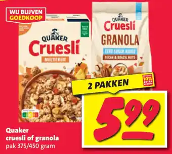 Quaker cruesli of granola aanbieding en online acties bij Nettorama