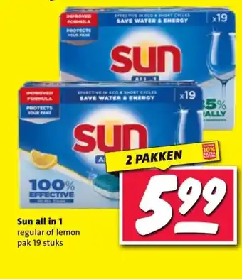 De aanbieding is verkrijgbaar in verschillende winkels, bekijk alle producten om de goedkoopste Sun all in 1 te krijgen. Als je graag wilt kijken of het artikel met meer korting te koop is in een andere winkel, bekijk de categorie 'Supermarkt'. Wellicht vind je deze aanbiedingen ook interessant: Sun All-in 1 vaatwastabletten normaal, Sun All-in 1 Vaatwastabletten Citroen 46 tabletten & Sun All-in 1 Vaatwastabletten Citroen 19 tabletten.