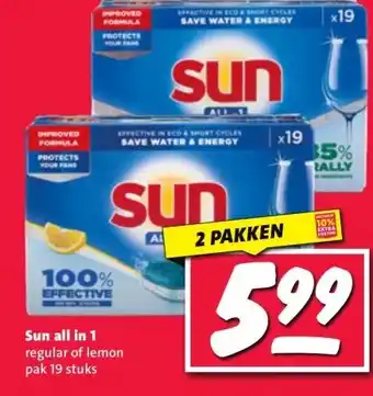 De aanbieding is verkrijgbaar in verschillende winkels, bekijk alle producten om de goedkoopste Sun all in 1 te krijgen. Als je graag wilt kijken of het artikel met meer korting te koop is in een andere winkel, bekijk de categorie 'Supermarkt'. Wellicht vind je deze aanbiedingen ook interessant: Sun All-in 1 Vaatwastabletten Citroen 60 tabletten, Sun All-in 1 Vaatwastabletten Citroen 19 tabletten & Sun All-in 1 Vaatwastabletten Citroen 46 tabletten.