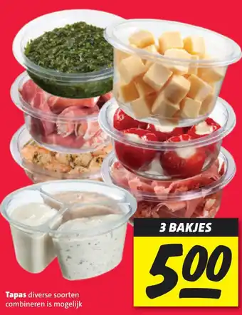 Geniet van een heerlijke mix van tapas met diverse soorten hapjes in 3 bakjes voor slechts 5.00 euro. Combineer verschillende smaken en texturen om je eigen perfecte tapaservaring te creëren. Of je nu houdt van vlees, vis, kaas of groenten, er is voor ieder wat wils. Met onze tapas kun je eindeloos variëren en nieuwe smaken ontdekken. Perfect voor een gezellige avond met vrienden of als aanvulling op een Spaanse maaltijd. Laat je smaakpapillen verrassen door de authentieke smaken en geniet van de gezellige sfeer die tapas met zich meebrengen. Bestel nu en haal de Spaanse keuken naar jouw eigen eettafel!