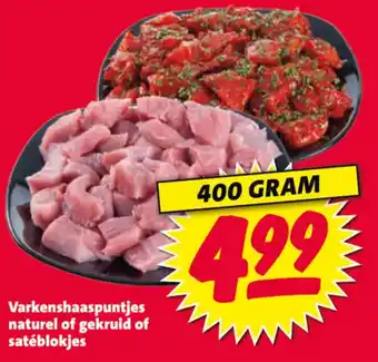 Varkenshaaspuntjes naturel of gekruid of satéblokjes 400 GRAM 4.99