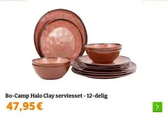 Nu in de aanbieding bij Obelink: Bo-Camp Halo Clay serviesset - 12-delig✅ Actie geldig van 7-01 t/m 31-12.