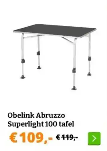 Obelink biedt naast de Obelink Abruzzo Superlight 100 tafel een ruime collectie producten aan. Houd de wekelijkse Obelink folder in de gaten om de beste aanbiedingen en acties te vinden. Naast Obelink Abruzzo Superlight 100 tafel, kunt u ook de volgende aanbiedingen vinden: Obelink caravanhoes, Tafel Pavarotti & Alsted tafel.