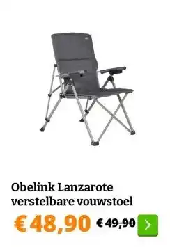 De prijs van de Obelink Lanzarote verstelbare vouwstoel kan ook teruggevonden worden hierboven op de pagina, samen met de datum van wanneer de aanbieding beschikbaar is. Ook kun je de prijzen in de huidige Obelink folder of op de Obelink website controleren. De aanbiedingen verzekeren je van het kopen van de Obelink producten voor de laagste prijs.