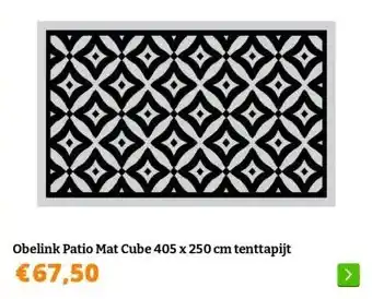 Nu in de aanbieding bij Obelink: Obelink Patio Mat Cube 405 x 250 cm tenttapijt✅ Actie geldig van 3-03 t/m 31-03.
