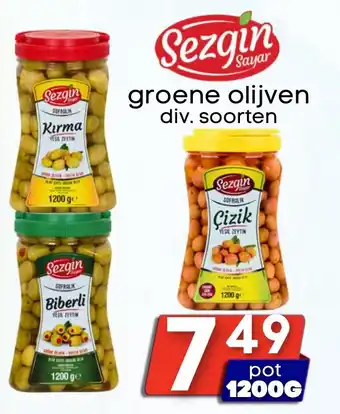 Sezgin groene olijven aanbieding bij Özbaktat Supermarkt