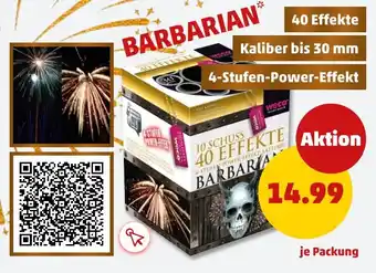 De Barbarian vuurwerk batterij is een indrukwekkend vuurwerkstuk met maar liefst 40 verschillende effecten en een krachtige 4-staps power-effect. Met een kaliber tot 30 mm zorgt deze Weco BARBARIA voor een spectaculaire show die je niet snel zult vergeten. Elke batterij bevat 10 schoten en biedt een ongekende actie die je feest compleet zal maken. De 4-STUFE POWER-EFFEKT BATTERIE is perfect voor vuurwerkliefhebbers die op zoek zijn naar iets bijzonders. En dat allemaal voor slechts €14.99 per verpakking. Mis deze kans niet en voeg de Barbarian toe aan je vuurwerkcollectie voor een onvergetelijke ervaring tijdens elke viering.