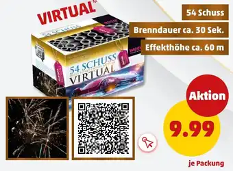 De 54 Schuss Virtual is een indrukwekkende vuurwerkshow in een doos. Met een brandduur van ongeveer 30 seconden en een effecthoogte van circa 60 meter, zorgt deze vuurwerkset voor een spectaculaire ervaring. De Multi Effekt Facher Batterij bevat verschillende effecten die de lucht vullen met kleurrijke en fonkelende patronen. De actie is non-stop en zal het publiek verbazen met zijn prachtige vuurwerkshow. Voor slechts 9.99 per pak, is de 54 Schuss Virtual een betaalbare optie voor een onvergetelijke oud en nieuw viering. Bestel nu en geniet van een knallende start van het nieuwe jaar!