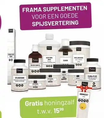 FRAMA SUPPLEMENTEN VOOR EEN GOEDE SPIJSVERTERING Gratis honingzalf t.w.v. 1599