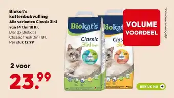 Koop Biokat's kattenbakvulling Alle varianten Classic 3in1 van 14 t/m 18 ltr. komende week met korting