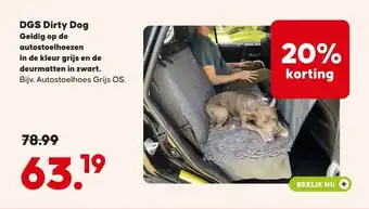 DGS Dirty Dog Geldig op de autostoelhoezen in de kleur grijs en de deurmatten in zwart. korting bij Pets Place