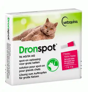 Nu in de aanbieding bij Pets Place: Dronspot Spot-On Kat 5 - 8 Kg - Anti wormenmiddel - 2 pip >5 - 8 Kg L✅ Actie geldig van 20-04 t/m 27-04.