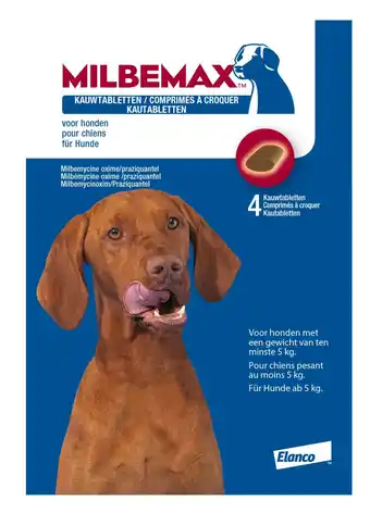 Nu in de aanbieding bij Pets Place: Milbemax Milbemax Kauwtablet Hond Vanaf 5kg - Anti wormenmiddel - 28 g 4 stuks Vanaf 5 Kg✅ Actie geldig van 20-04 t/m 27-04.