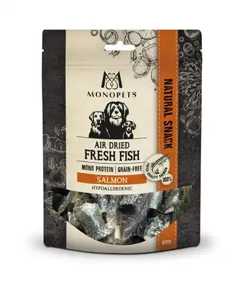 Nu in de aanbieding bij Pets Place: Monopets Air Dried Fresh Fish - Verwensnacks - Zalmfilet 100 g✅ Actie geldig van 29-04 t/m 5-05.