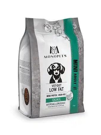 Koop Monopets Vet Diet Low Fat Mini Adult - Hondenbrokken - Kwartel 2 kg komende week met korting