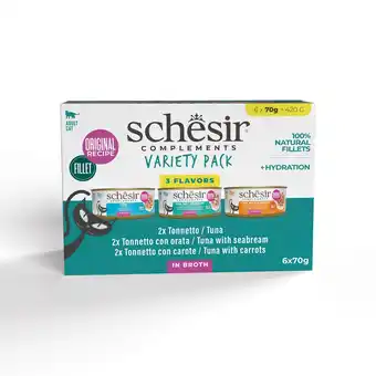 Schesir Complete In Bouillon - Kattenvoer - Tonijn Zeebrasem Wortel 6x70 g Variety Pack aanbieding bij Pets Place
