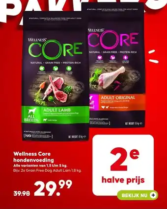 Nu in de aanbieding bij Pets Place: Wellness Core hondenvoeding✅ Actie geldig van 23-02 t/m 22-03.