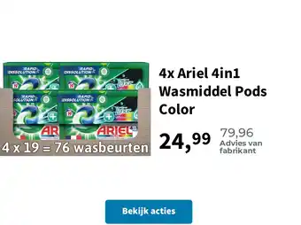 4x Ariel 4in1 Wasmiddel Pods Color aanbieding bij Plein.nl