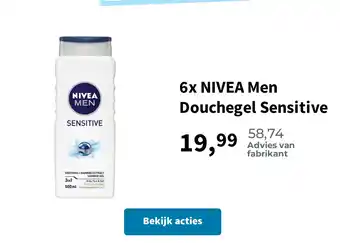 6x NIVEA Men Douchegel Sensitive aanbieding en online acties bij Plein.nl