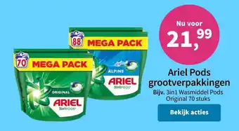 Plein.nl biedt naast de Ariel Pods grootverpakkingen een ruime collectie producten aan. Houd de wekelijkse Plein.nl folder in de gaten om de beste aanbiedingen en acties te vinden. Naast Ariel Pods grootverpakkingen, kunt u ook de volgende aanbiedingen vinden: Ariel 3-In-1 Pods Colour, Ariel waspoeder of pods & Ariel 3-In-1 Pods Alpine.