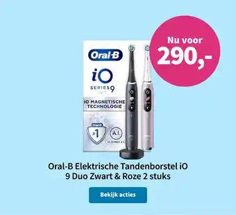 De Oral B Elektrische Tandenborstel iO is momenteel met korting verkrijgbaar bij Plein.nl. Hier vind je alle details over prijs, geldigheidsduur en actievoorwaarden. Vergeet niet om ook andere aanbiedingen en deals voor Oral B Elektrische Tandenborstel iO te bekijken zodat je zeker weet dat je de beste prijs betaalt. De kortingsactie loopt van 18-01-2026 tot 24-01-2026. Is de actie inmiddels verlopen? Geen zorgen, vergelijk dan soortgelijke aanbiedingen of volg de productcategorie voor toekomstige prijsverlagingen. Zo koop je altijd met voordeel.Veelgestelde vragen over Oral B Elektrische Tandenborstel iO