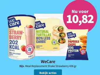De aanbieding is verkrijgbaar in verschillende winkels, bekijk alle producten om de goedkoopste Wecare te krijgen. Als je graag wilt kijken of het artikel met meer korting te koop is in een andere winkel, bekijk de categorie 'Drogist en Parfumerie'. Wellicht vind je deze aanbiedingen ook interessant: WeCare, WeCare en Modifast & WeCare en Modifast.