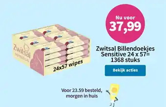 Zwitsal Billendoekjes Sensitive korting bij Plein.nl