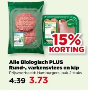 Koop Alle biologisch plus rund-, varkensvlees en kip komende week met korting