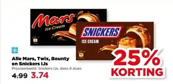 Alle Mars, Twix, Bounty en Snickers IJs korting bij PLUS