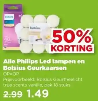 Alle Philips Led lampen en Bolsius Geurkaarsen aanbieding en online acties bij PLUS
