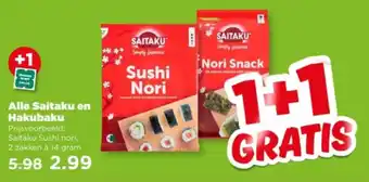 Alle Saitaku en Hakubaku +1 actie: Saitaku Sushi nori 7+7 GRATIS