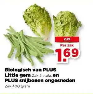 Biologisch van PLUS Little gem en PLUS snijbonen ongesneden korting bij PLUS