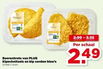 Boerentrots van PLUS Kipschnitzels en kip cordon bleu's