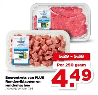 Boerentrots van PLUS Runderriblappen en runderhachee aanbieding en online acties bij PLUS