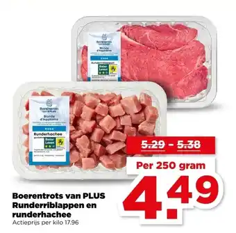 Boerentrots van PLUS Runderriblappen en runderhachee aanbieding bij PLUS